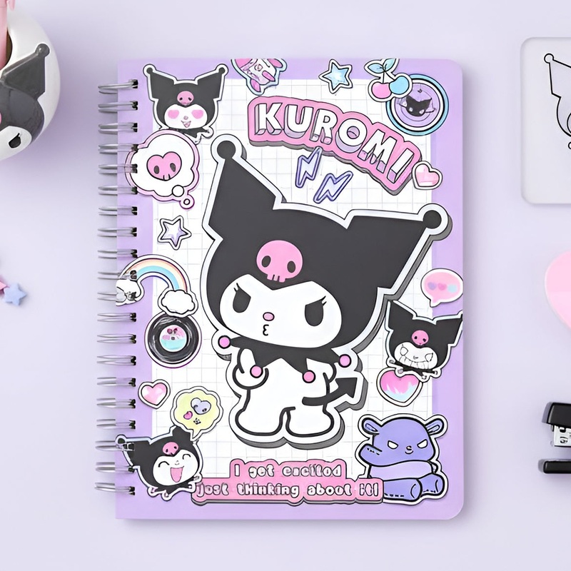 Why Youll Love It: Retro Y2K Kuromi Design Bold lavender cover with stars, hearts & rainbows Handy B6 Size Ideal for journaling, quick notes, or short classes Grid Pages Neat and versatile for writing, sketches, or lists Illustrated Details Kuromi peeks from page corners for extra cuteness Double Ring Binding Durable and easy to flip for smooth writing Mischievous & Cute Perfect gift for Kuromi fans or collectors