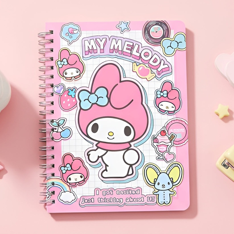 Why Youll Love It: Adorable Y2K Pop Style My Melody with sweets, strawberries & rainbows B6 Handy Size Compact yet roomy for journaling or class notes Grid Pages Tidy layouts for writing, lists, and sketching Illustrated Corners Cute My Melody accents on every page Double Ring Binding Flip pages easily and lay notebook flat Collectible Stationery A dreamy Sanrio piece for every fan