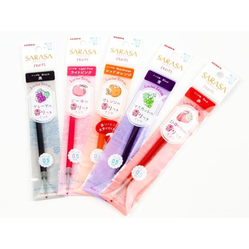 Zebra has been making scented pens since the 80's, and these Zebra Sarasa Clip are the latest in their scented limited edition line-up. These Zebra Sarasa Clip scented refills in .5mm tip size are part of the limited edition scented Sarasa Clip series.Avai
