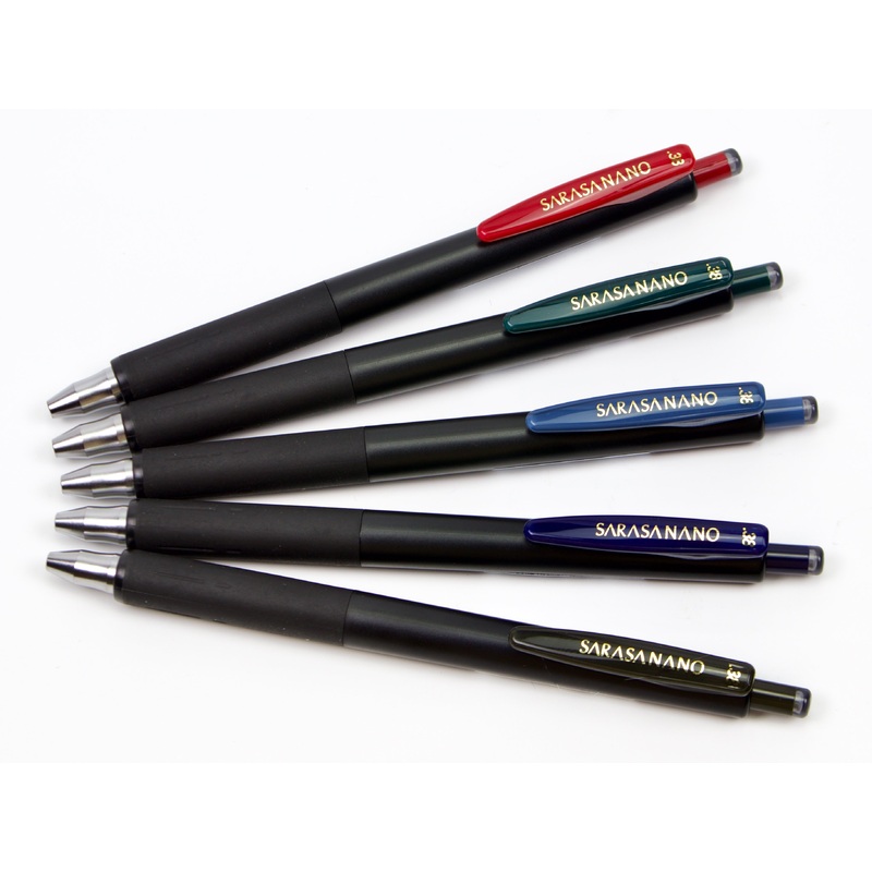 The Zebra Sarasa Clip Nano Vintage is a fine .38mm Sarasa gel ink pen with a special spring mechanism in the pen cap that allows such a fine tip size to feel smoother to the user. The pen nose and nib is metal, which also contributes to a smoother write. This pen arrives with new .38mm tip size, but can be refilled in your choice of Sarasa Clip refill sizes.