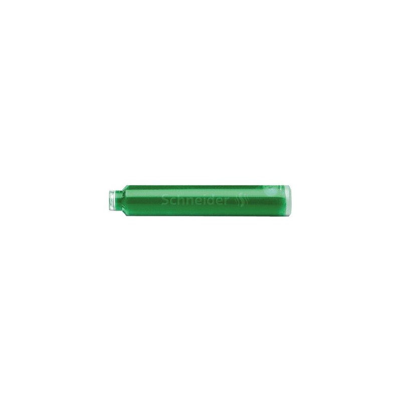 Box with 6 standard ink cartridges with ball closure.Ink colour: Green. Suitable for Schneider and many other fountain pens and cartridge rollers.