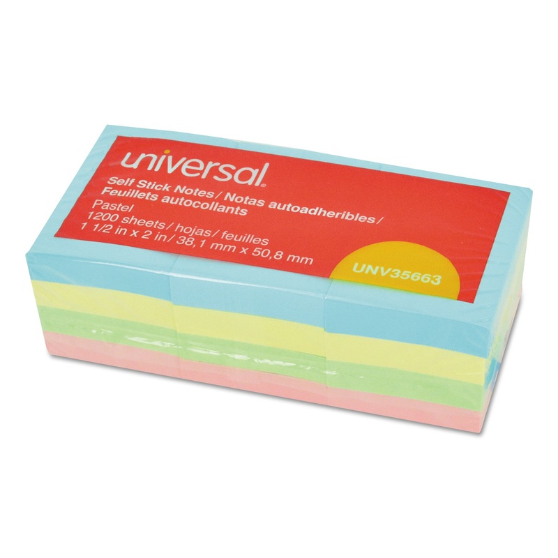 SELF-STICK NOTE PADS, 1 1/2 X 2, ASSORTED PASTEL COLORS, 100-SHEET, 12/PACK