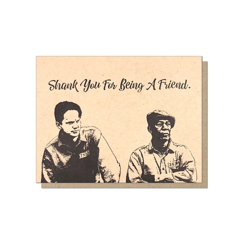 "Shank You For Being a Friend."Letterpress printed on fine cardstockA2 (4.25x5.5") greeting cardPackaged with a recycled paper envelope