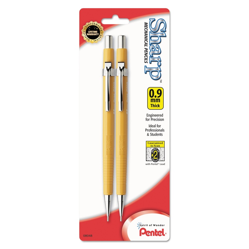 SHARP MECHANICAL PENCIL, 0.9 MM, HB (#2.5), BLACK LEAD, YELLOW BARREL, 2/PACK
