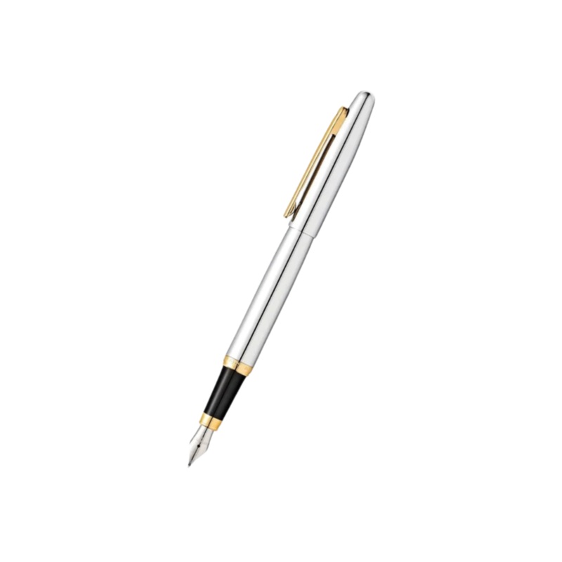 The polished chrome finish of the Sheaffer VFM E9422fountain pen exudes an air of elegance. Its gold-tone trim adds a touch of sophistication, making it an ideal choice for both personal use and gifting.z