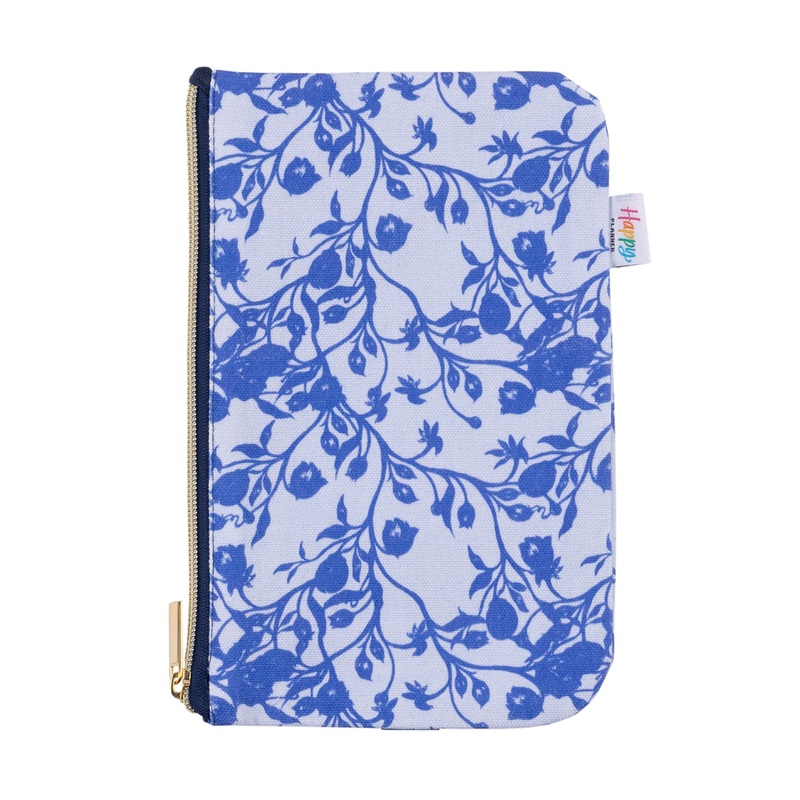 Keep your planner tools safe! This canvas pen and pencil pouch features blue and white floral designs inspired by the Japanese dying techniques called Shibori. The pen and pencil pouch has a dreamy blue band that wraps around your Happy Planner cover. The