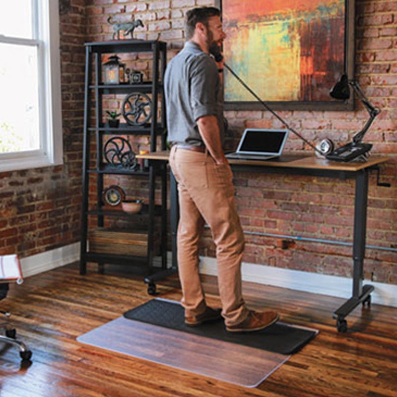 WorkFit Desktop Sit/Stand WorkstationsPresenting an ultra-easy, sit/stand solution which instantly converts a tabletop or desk into a healthy, sit/stand workstation. Simply place WorkFit on a tabletop or desk and you’re ready to work! WorkFit saves space because it moves straight up and down, always staying within the footprint of your desktop. The platform is stable throughout its range of motion, and one can freely lean on it without the worry of it tipping. WorkFit is available in two sizes and two colors. Workfit measures 35″w x 22″d and accommodates single or dual monitors up to 24″ diagonal, while WorkFit XL measures 37 1/2″w x 25″d to accommodate larger dual monitor arrangements. WorkFit Workstations are also available with a variety of Monitor Conversion Kits. These kits lift monitors above the platform surface, keep the surface clutter-free, and have a 5″ adjustment range to position monitors at a comfortable viewing height. The Single Monitor Kit supports one monitor up to 24″ diagonal, while the Single XL Monitor Kit supports one monitor up to 27″ diagonal. The Dual Monitor Kit supports two monitors up to 24″ diagonal, and the Single Monitor & Laptop Kit accommodates one monitor up to 24″ diagonal and a laptop computer.