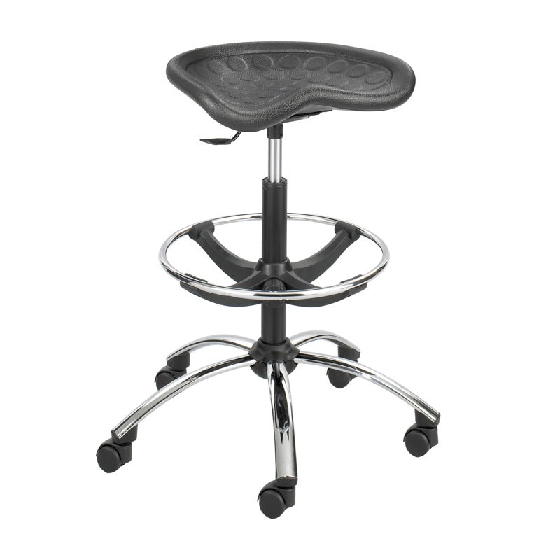 Repetitious movements can hammer the body, causing workers to ache and constantly shift positions. Construct your inspection, assembly and receiving areas using products that help them hang tough while they’re hanging in there. Designed for comfort, safety and durability, this unique seating is perfect for a wide range of activities in any facility. The SitStar offers a soft, polyurethane, oversized tractor-shaped seat constructed of PVC coated gel molded on a metal frame. 5-star polished chrome base with raised adjustable foot ring and carpet casters. Optional Back adds comfort while promoting good posture (order separately). Some assembly is required.