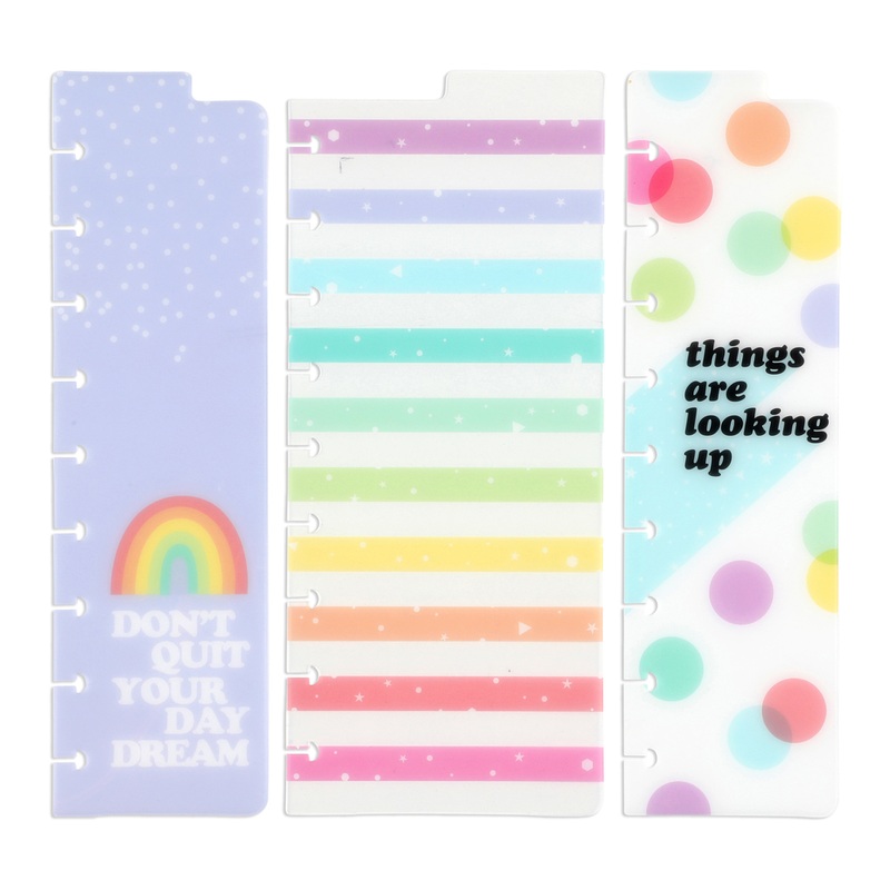 Section off those note pages and spreads in your favorite Happy Planner with theses rainbow bright dashboards! The fun designs will add a pop of color to your notebook or planner masterpiece.3 dashboardsSkinny Classic sizedDimensions: 11.00 x 7.25 x 0.12 i