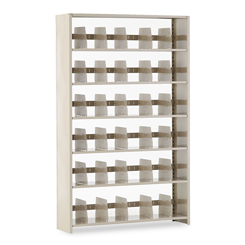 Save 50% of the floor space used by conventional files. For highly active files and records. Provides a single freestanding unit or use with Add-On Units for a complete wall system. Units snap together without tools or fasteners. All shelves are adjustable