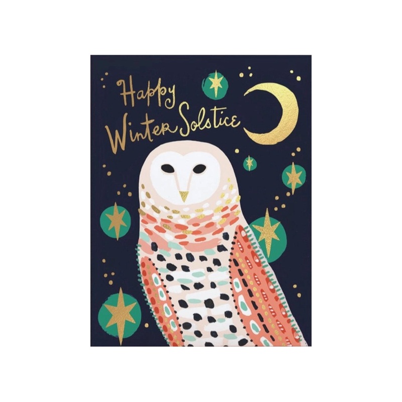A colorful, snowy owl backdropped with gold foil stars sends festive winter wishes. Heavy, matte eggshell stockBlank inside4 3/4 X 5 1/2Paired with a matching envelope