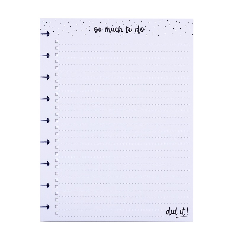 Get everything done when you have so much to do! This So Much To Do Classic size Happy Planner block paper pad features checklist paper to see your to-dos at a glance. Add chores, reminders, and errands. Check it off throughout your day. This to-do list no