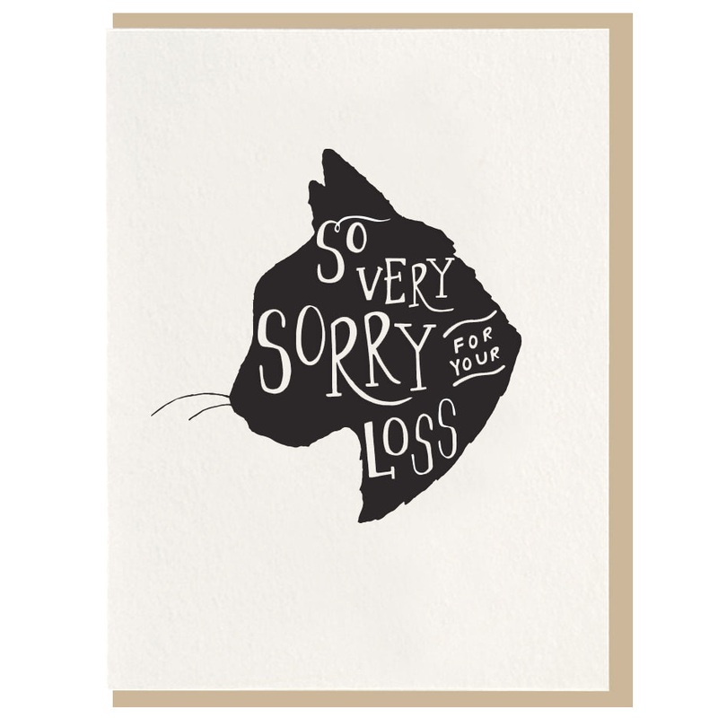 Brighten someone's day with this simple yet sweet 'so very sorry for your loss' card. Printed on plush 100% cotton paper and includes acoordinatinglight greyenvelope.Includes: 1 card 1 envelopeSize:5 1/2x 4 1/4" foldedLetterpress printed