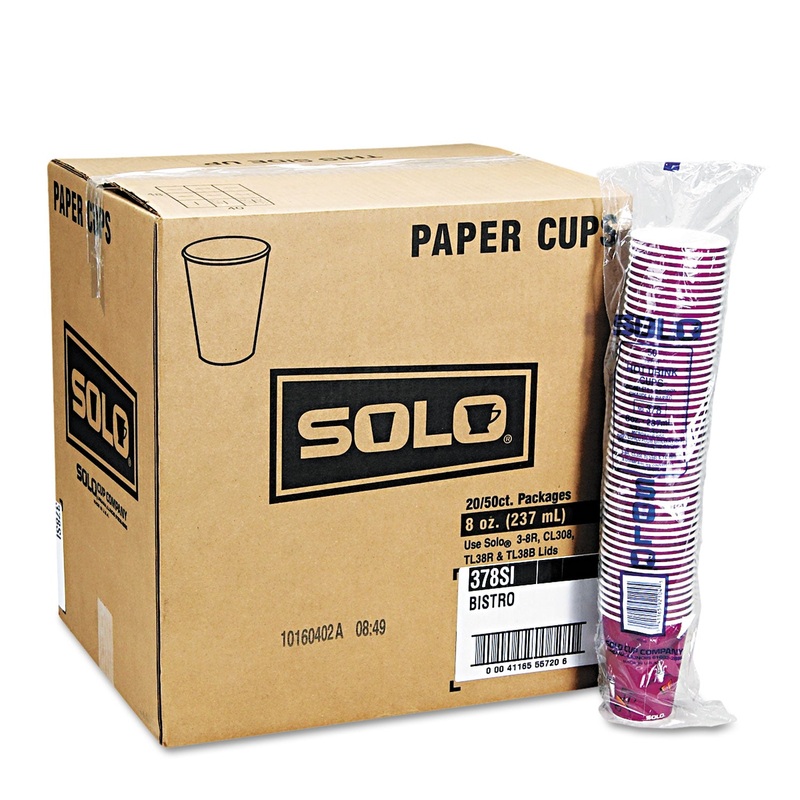 SOLO BISTRO DESIGN HOT DRINK CUPS, PAPER, 12OZ, MAROON, 50/BAG, 20 BAGS/CARTON