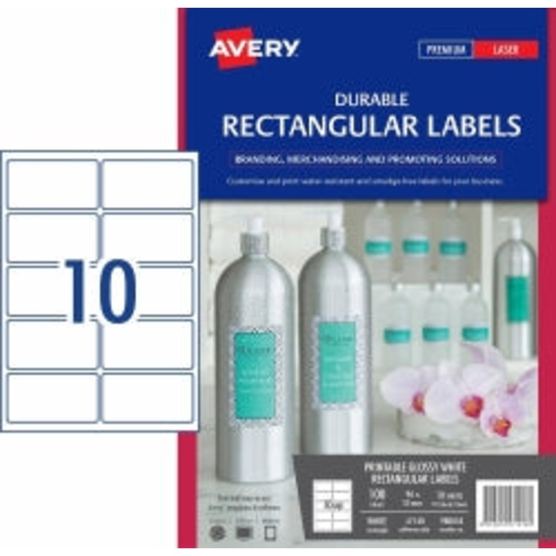 S114X1X1SP- LABELS AVERY L7148 DURABLE RECTANGLE GLOSSY WHITE 10UP 10 SHTS Special Order Only G33187