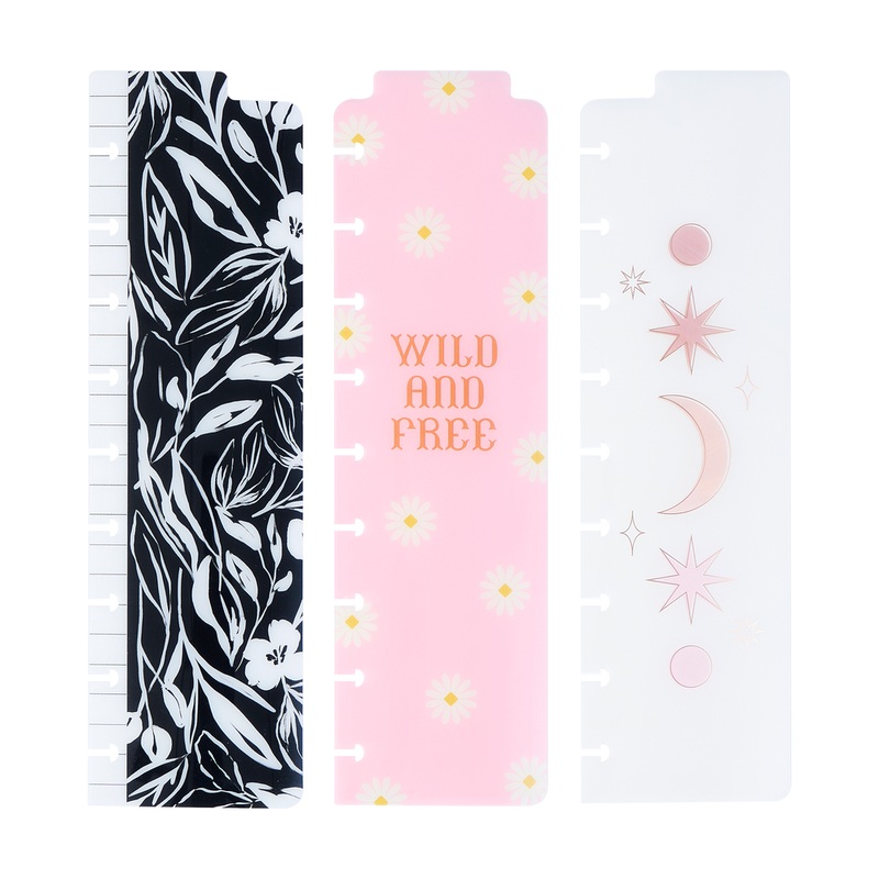 Never lose your spot with these Classic size Sparkle & Bloom decorative bookmarks. These themed bookmarks come in a 3 pack with 3 unique designs. The top tab is included in the design for easier access. Snap them into any Happy Planner or notebook and star