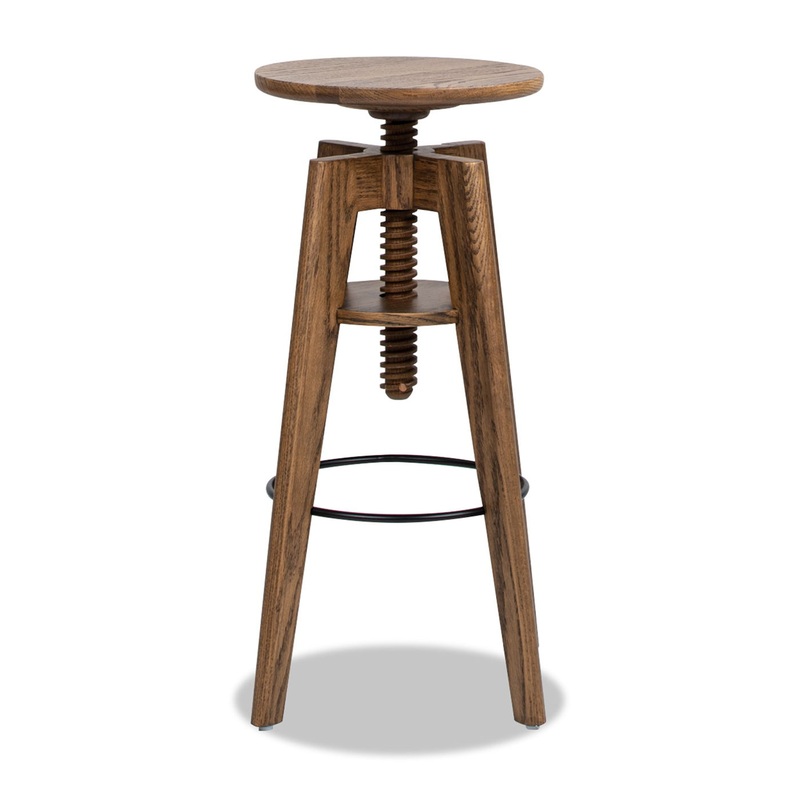 Spencer – Minimalist Oak Adjustable Bar Counter Stool – Walnut Brown Oak