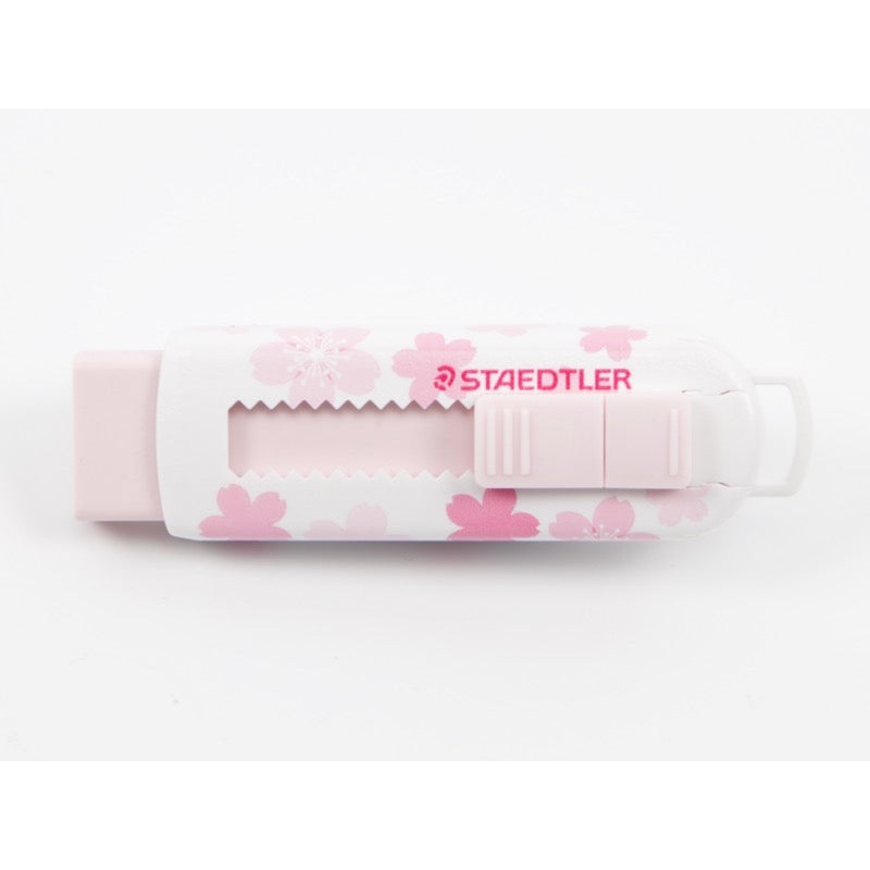 Staedtler Limited Edition Cherry Blossom eraser holder with pale pink plastic eraser. The Staedtler eraser is soft and erases beautifully without smearing. PVC and Latex Free.