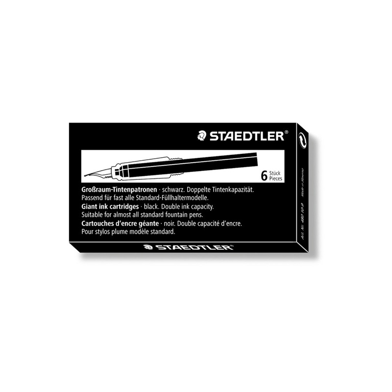 Staedtler international standardlong size ink cartridges are suitable for the Staedtler range of fountain pens that use long ink cartridges. Also suitable for other brands of fountain pen that use the international standardlong size cartridge. Available in