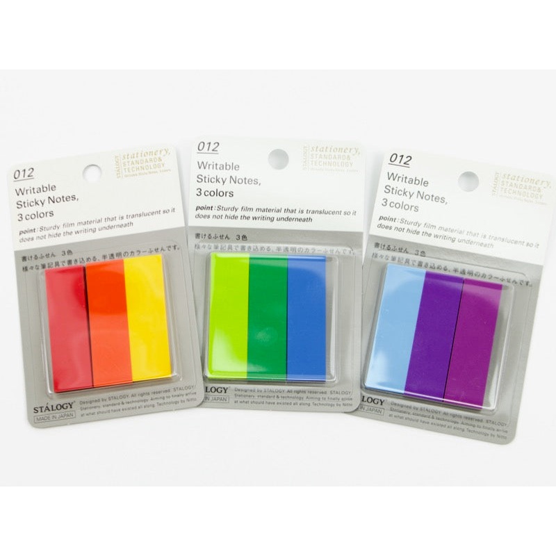 These 15 mm wide sticky flags make classifying easy. Long adhesive area prevents flags from falling off surfaces. Pigmented, yet transparent, allowing for clear visibility. Made with sturdy film that does not tear easily. Pairs really nicely with Stalogy n