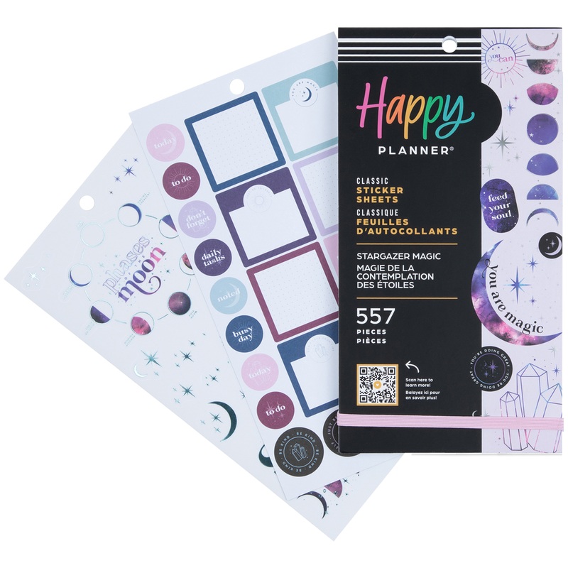 This Stargazer Magic sticker book features designs inspired by the night sky. Personalize any Happy Planner or notebook and add stars and moons to make your spreads turn into an artistic expression. Take notes, write down daily to-dos, and use to plan your