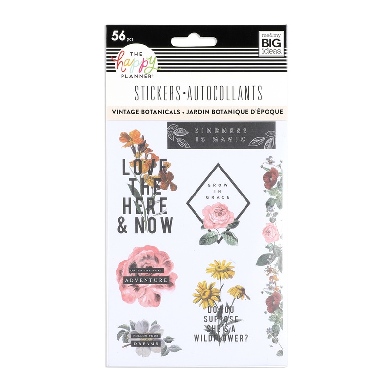 For the lover of all things vintage and antique comes the Happy Planner Vintage Botanicals Sticker Sheets. The rich hued floral motifs throughout these stickers will put a delicate spin on your favorite Happy Notes or planner!56 stickers Dimensions: 9.12 x