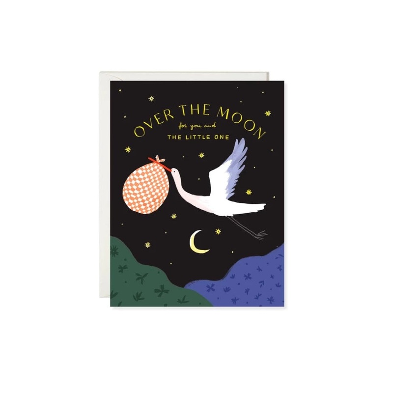"Over the Moon for you and the little one"Size: A2, 4.25" 5.5"Blank interiorNatural White Cover PaperIncludes envelope