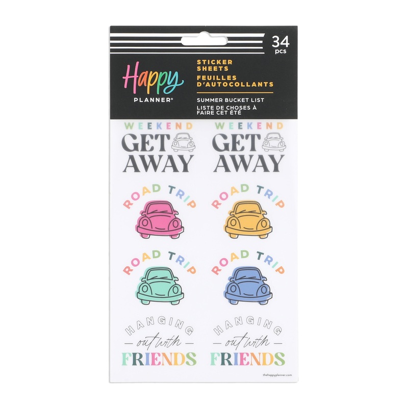 Sunshine on your mind. These sticker sheets feature summer themed reminders, bright colors, and vacay vibes. Add these to your scrapbooks, Memory Keeping Journals, or Happy Planner spreads love the season you're in.5 sticker sheets include 34 stickersAdd t