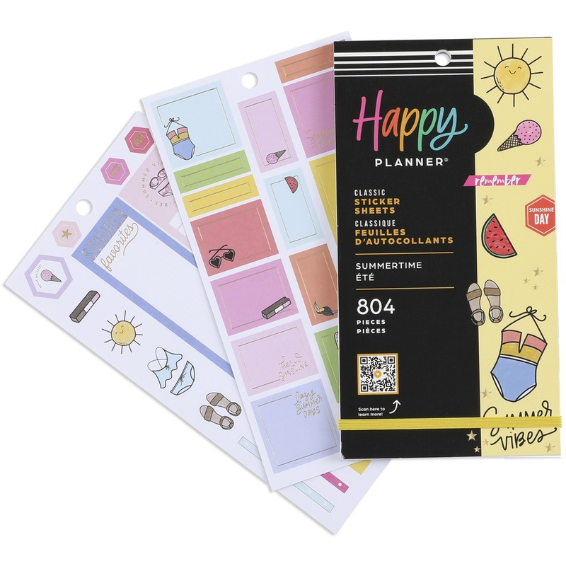 Summer is a state of mind. This Value Pack Sticker Book has 30 sheets with 804 stickers. Add these stickers to your Happy Planner, guided journal, notebook, Memory Keeping Journal, or bullet journal to help you prioritize your tasks and decorate your spreads! Create spreads with these seasonal vibes, bright trims, memo boxes, cool quotes, and colorful letters and numbers.