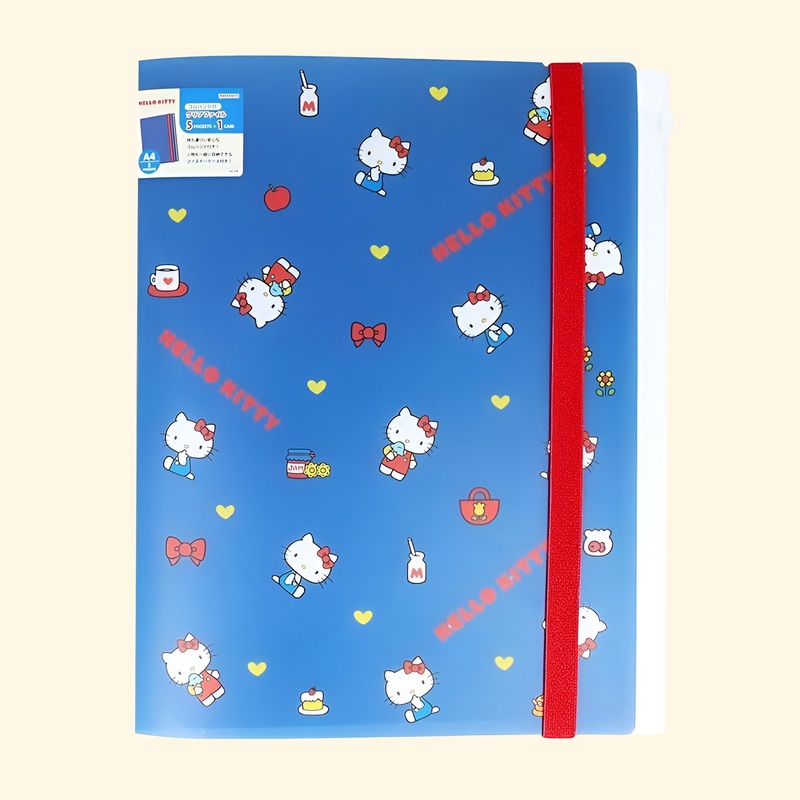Why Youll Love It: Cheerful Hello Kitty Print Classic Sanrio charm with bows, apples, hearts & more 6 Practical Compartments 5 double-sided pockets + 1 secure zipper pouch Durable & Waterproof Made of sturdy, spill-resistant PP plastic to protect your pages Elastic Strap Closure Bold red band keeps contents safe and stylish on the go A4 Sized & Lightweight Roomy enough for full-size documents while staying easy to carry