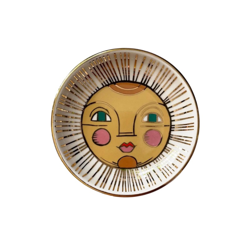Thisceramic trinket dishis the perfect catchall for your nightstand or dresser. White ceramic is adorned witha colorful, hand-painted design, anda lined edge in metallic gold for added flair.Perfectly packaged in plastic-free gift boxes, pretty enough to g