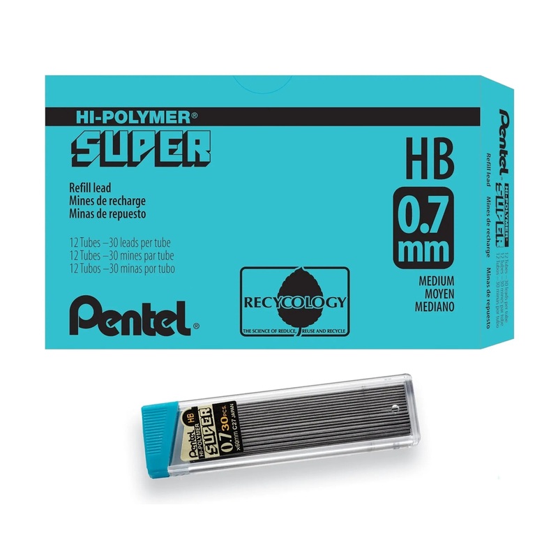 Pentel Super Hi-Polymer HB lead is equivalent to a #2 pencil, guaranteed to scan on tests, resists breaking and never needs sharpening Each tube of Pentel Super Hi-Polymer HB lead is made of 100% recycled plastic and part of the Pentel Recycology line of p