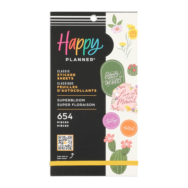 Live in the moment. This Superbloom Value Pack Sticker Book has 30 sheets with 654 stickers. Add these stickers to your Happy Planner, guided journal, notebook, Memory Keeping Journal, or bullet journal to help you prioritize your tasks and decorate your s