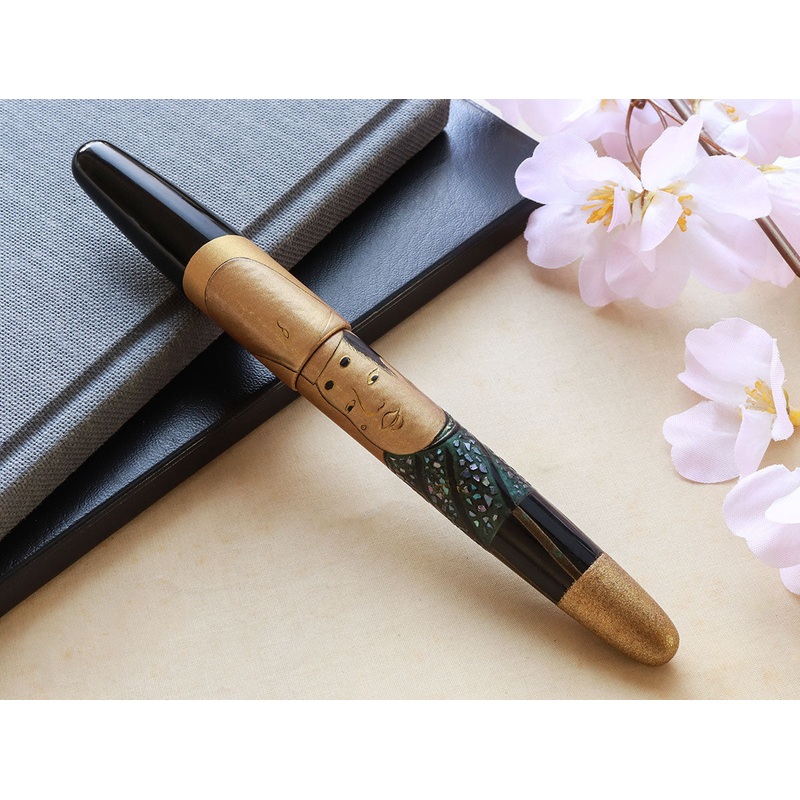 The original design is called “Senmen Narihira”, which portrays a figure of noblemen in a robe and Eboshi (old-style hat). The original piece of Senmen Narihira is stored at the Nezu Museum of Art in Aoyama, Tokyo, and is an indispensable page of the history of lacquer craftmanship. It is a soulful work of art that we hope to hand down as a fountain pen after approximately 220 years.