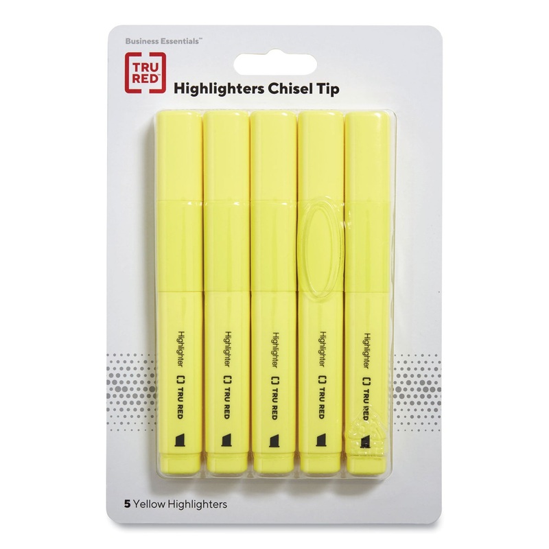 Tank Style Chisel Tip Highlighter, Yellow Ink, Chisel Tip, Yellow Barrel, 5/Pack