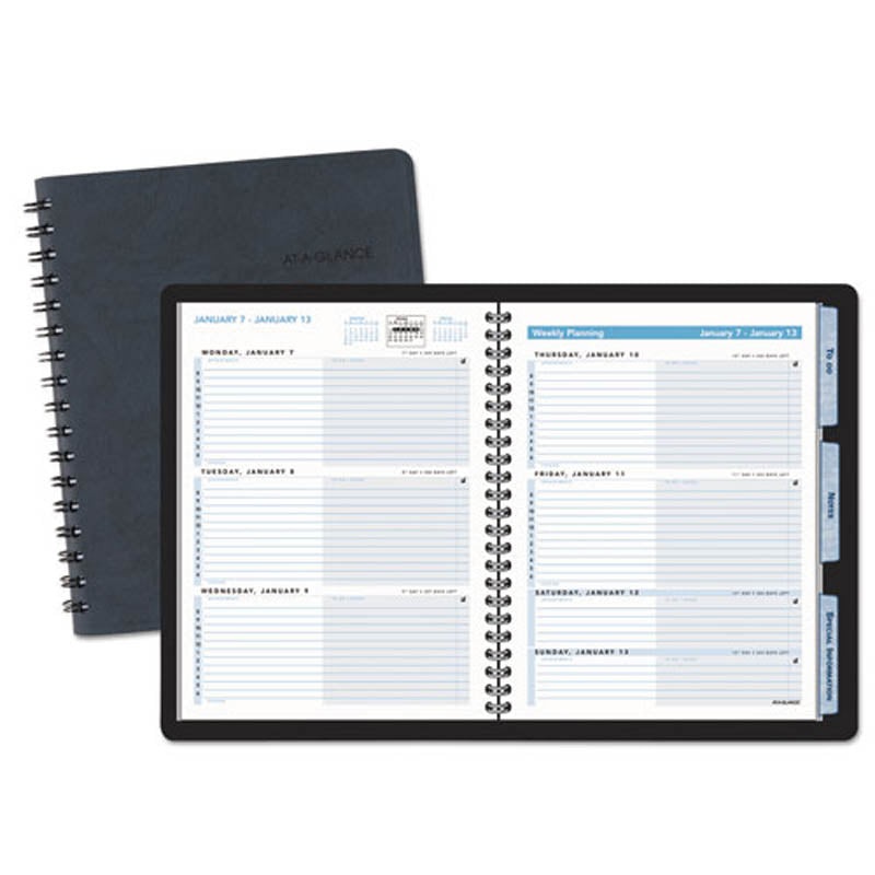 FeaturesFor the ultimate list maker and planner.Features tabbed sections for To-Do's, notes and special information (800#'s, future planning, web addresses and four-color world map).One week per two-page spread: Half of each day for appointments, half for