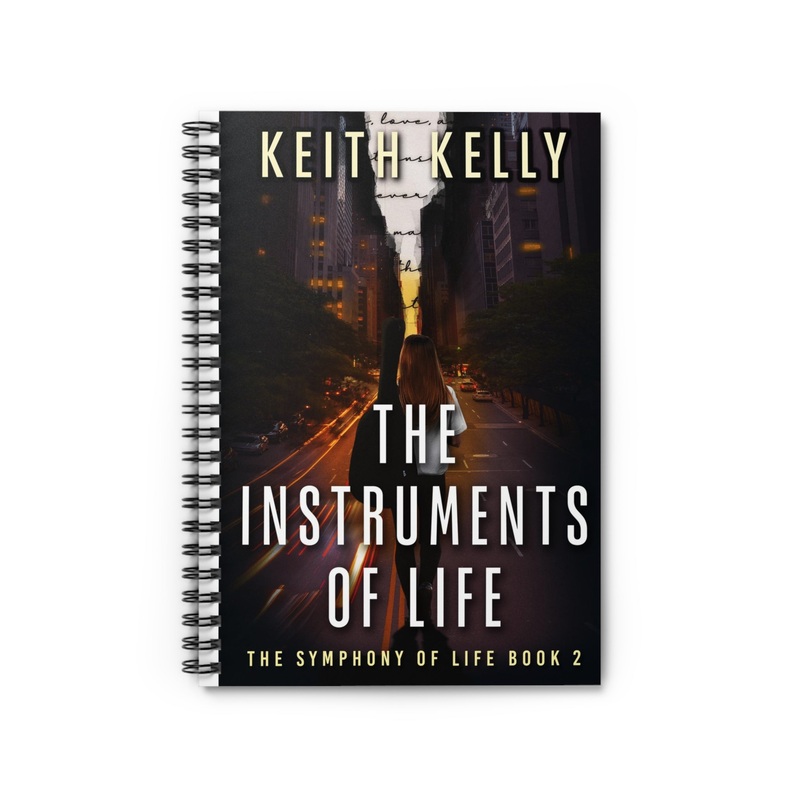 Shopping lists, school notes or poems - this 118 page spiral notebook with ruled line paper is a perfect companion in everyday life. The cover art in this spiral notebook is from Keith Kelly's book, The Instruments Of Life.