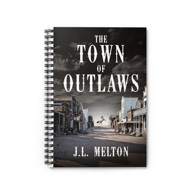 Shopping lists, school notes or poems - this 118 page spiral notebook with ruled line paper is a perfect companion in everyday life. The cover art in this spiral notebook is from J.L. Melton's book, The Town Of Outlaws.