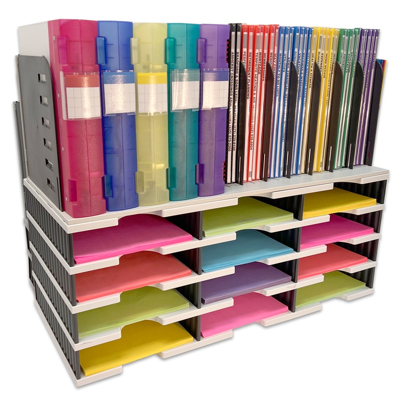 TierDrop Desktop Organizer (12-Compartments COMBINED with a TierDrop Vertical File Topper)