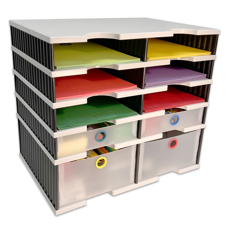 FeaturesEVERYTHING YOU NEED IN ONE COMPACT, MODULAR SYSTEM - Overall Unit Measures just 19 1/8"w x 17"h x 13"d. Combines 8 letter tray compartments, 2 Supply amp; 2 Storage Drawers, and a Riser Storage Base into one compact organizer. Letter Tray Compartme