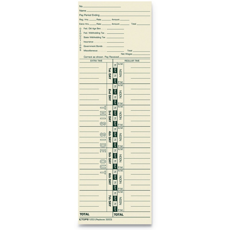 Equivalent to time clock manufacturer's time cards. 143 lb. tag stock.
