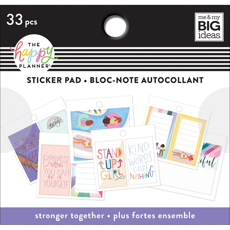 Celebrate all things female and girl power with the Happy Planner Stronger Together Tiny Sticker Pad. This pad is full of inspiring stickers for your spreads to remind you that you that you can easily rely on that girl squad for moments of needed strength