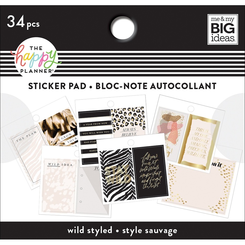 Put a wild spin on your Happy Planner notes and weekly spreads with the Wild Styled Tiny Sticker Pad! Animal prints galore are featured throughout this sticker pack to make your plans and appointments ROAR!34 stickers 20 sheets Dimensions: 3.50 x 3.37 x 0.