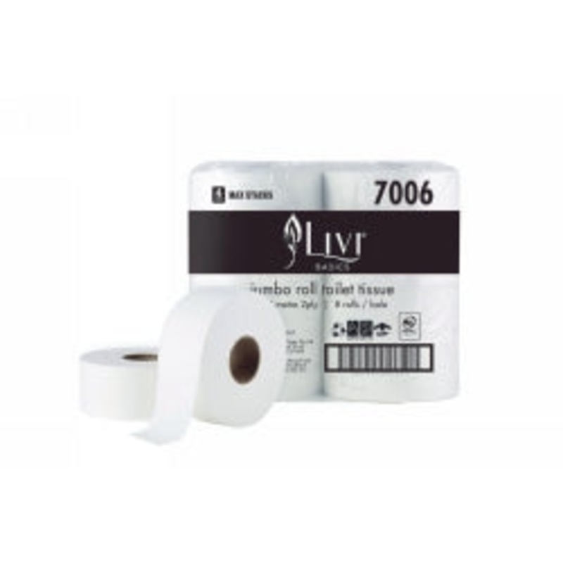 854S7S4XTOILET PAPER ROLL LIVI BASICS 300M JUMBO 2PLY G46010