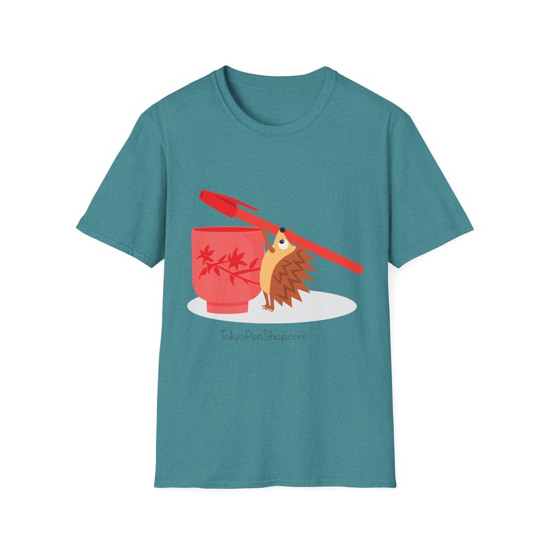 A soft cotton t-shirt featuring Tokyo Pen Shop mascot, Hiro, sneaking a pen from the pen cup! This t-shirt is uni-sex sizing.Tokyo Pen Shop made-to-order merchandise is shipped separately from our printing partner, directly to you. Therefore, your t-shirt