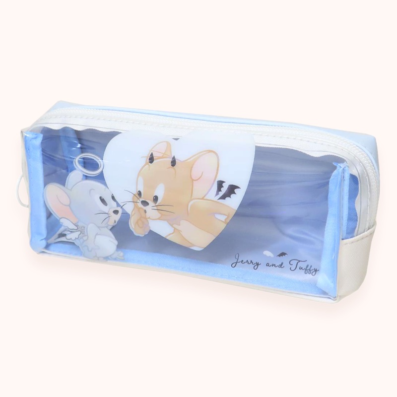 This mischievously cute pencil pouch stars Jerry and Tuffy in their ultimate good-vs-evil formangel wings vs. devil horns! With a clear PVC front and soft pastel blue design, its roomy enough for all your stationery essentials while staying lightweight and