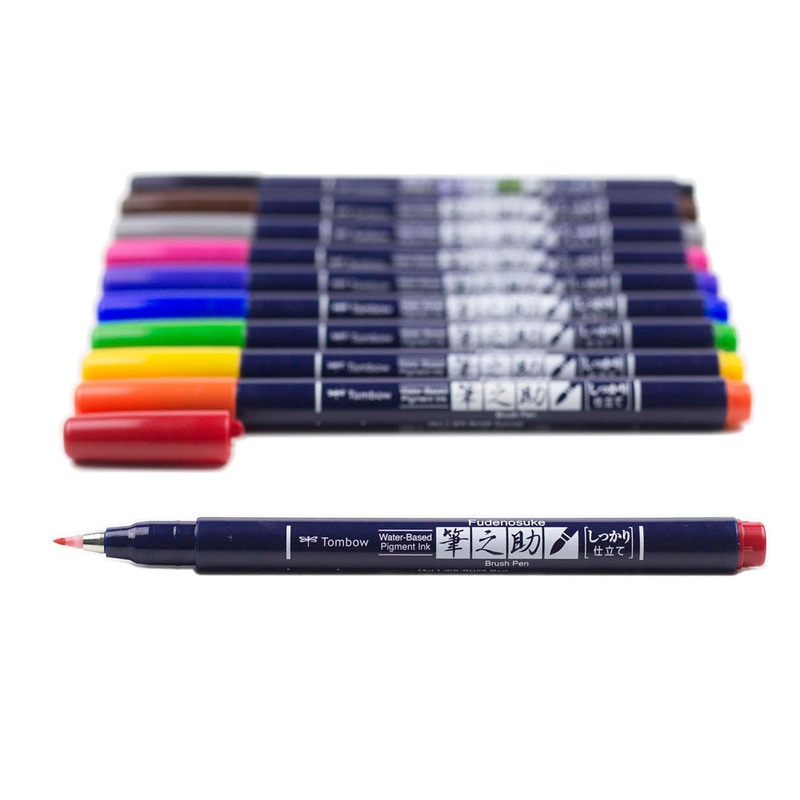 Tombow Fudenosuke hard tip brush pen features a firm yet flexible brush tip for different lettering and drawing techniques.FeaturesCreate extra-fine, fine or medium strokes by a change in brush pressureSuitable for calligraphy and drawingsBarrel made of re