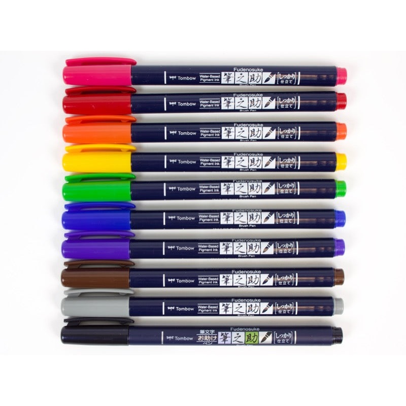 Tombow Fudenosuke brush-style lettering pen is a fantastic lettering practice pen. Now available in color! Available in black, gray, brown, purple, pink, blue, green, yellow, orange, and red water-based pigment ink. Previously featured in our Best of 2018