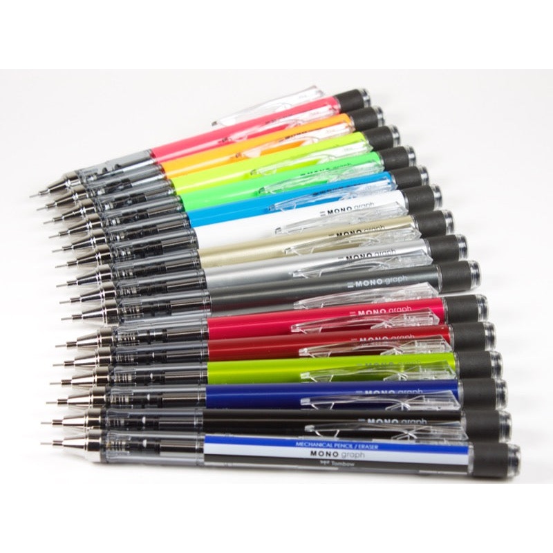 Tombow Mono Graph pencil is a comfortable .5 drawing pencil with a handy twist up eraser. The Mono Graph is also a shaker pencil, which means you can shake to advance the lead.Please note: Some colors may no longer be available.Also available in .3 mm vers
