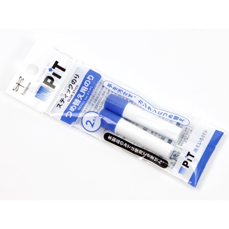 Two-pack refill for the Tombow Mono PiT High Power Slim Glue Stick Pen. Applies blue, dries clear.